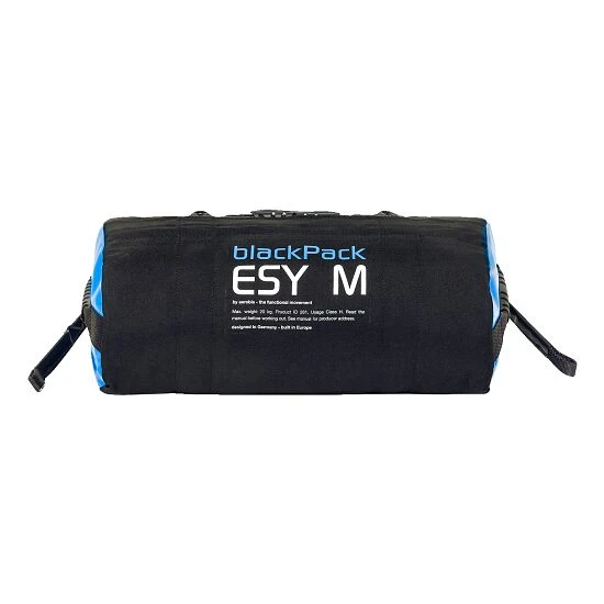 Der Aerobis BlackPack „Esy“ wird mit Sand gefüllt und ähnelt einer Tasche. An ihr befinden sich verschieden angebrachte Griffe, mit denen Sie zahlreiche Trainingsmöglichkeiten bekommen. Die BlackPack ist in 3 Größen erhältlich – Größe S ist bis zu 10 kg befüllbar, Größe M bis zu 20 kg und Größe L bis zu 30 kg. Selbst Untrainierte haben so die Möglichkeit, entsprechend des Trainingsstandes zu trainieren. Die BlackPacks werden mit Sand gefüllten Loading Bags, welche jeweils 10 kg Sand enthalten, bestückt. Somit kann das entsprechende Trainingsgerät bis zur Höchst-kg-Angabe befüllt werden. Nachdem Sie das Trainingsgewicht festgelegt haben, können Sie mittels beigelegten Einsteckkarten das Gewicht in der Fensterlasche an der Seite anzeigen.