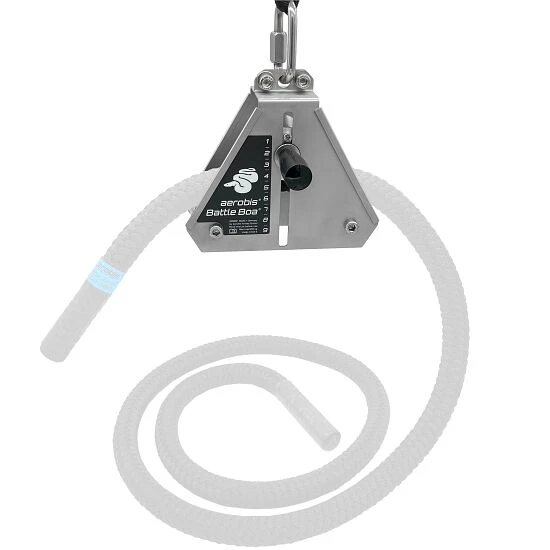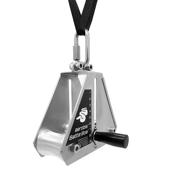 Der Aerobis Seilzugtrainer „Battle Boa“ besticht vor allem durch seine Vielseitigkeit. Er ermöglicht neben Sled-Pulling und Seilklettern auch das Endlos-Seiltraining. Auch der Widerstand ist frei wählbar – Im Inneren ist eine Seilbremse verbaut, die das Seil durchläuft. Eine stufenlose Anpassung ist somit möglich bis hin zur vollständigen Blockade (je nach Seildurchmesser). Auch die Zugrichtung ist variabel und lässt sich schnell um 180 Grad drehen. Durch das Ziehen des Seils und dem Training in verschiedenen Positionen stärken die Trainierenden Kraft und Ausdauer sowie die Muskeln in den Armen, Schultern, Rücken und Rumpf.