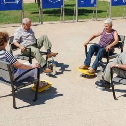 Das Agapito Outdoor-Fitnessgerät „Arm-Fahrrad“ ist ein ideales Herz-Kreislauf-Training. Mit kreisenden Bewegungen wird das „Arm-Fahrrad“ in Schwung gebracht. Und beide Übende gleich mit. Ob vorwärts oder rückwärts – beides ist möglich. Der fein abgestimmte Widerstand der Räder trainiert den gesamten Oberkörper. Beide Arme bewegen sich im Gleichtakt wie beim Radfahren. Gegenläufige Bewegungen der Teilnehmer sind ebenfalls möglich. So lassen sich auch Wettbewerbe gestalten oder die Anlage lässt zum kognitiven Training, z. B. durch Zählen der Umdrehungen, einsetzen.