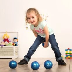Diese Gewichtsbälle sind auch großartige Helfer beim Balancetraining. Die einfachste Übung: Man klemmt im Liegen einen Ball zwischen die Beine und hebt diese an. Hier werden nicht nur die Bauchmuskeln der Kinder, sondern auch die Balance ordentlich trainiert. Auch im Stehen mit ausgestreckten Armen kann mit jeder Hand ein Ball balanciert werden. Eine spannende Erfahrung ist dabei, wie sich die unterschiedlichen Gewichte der Bälle auf den Körper auswirken.