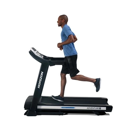 Das Horizon Fitness Laufband „Adventure 3“ überzeugt neben dem modernen Design und der guten Qualität auch durch die optimalen Dämpfungseigenschaften. Der stabile Rahmen und die sehr große Lauffläche von 140×51 cm geben Ihnen ein sicheres Gefühl während Ihrer Fitness-Einheit. Dank des 3-Zonen-Dämpfungssystems ist der Laufkomfort auf dem Heimtrainer besonders hoch. Nach dem Training können Sie das Fitness-Gerät über das Feather Light Folding System leicht zusammenklappen und mittels Transportrollen platzsparend an einem anderen Ort verstauen.