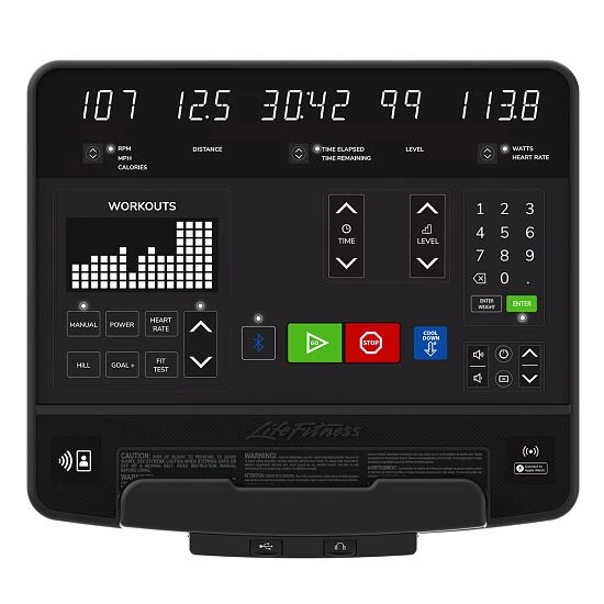 - Trainingsprogramme: Manuell, Quick Start, Hügel, Zufall, Zeitziel, Entfernungsziel, Kalorienziel, Herzfrequenzziel, METs-Ziel, Wattziel, sanfte Hügel, Widerstands-Intervall