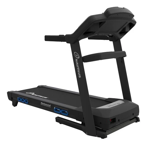 Das Nautilus Laufband „T628“ verfügt über ein fortschrittliches Dämpfungssystem: Beim Rebound™-Dämpfungssystem wird der vordere Bereich des Laufdecks um 25 % weicher gedämpft – dadurch werden ihre Schritte beim Laufen gelenkschonend gedämpft. Im hinteren Bereich hingegen ist die Dämpfung härter und sorgt für eine optimalen Abstoß. Das Fitnessgerät ist bis 160 kg belastbar und daher auch ein Laufband, auf dem Übergewichtige trainieren können.