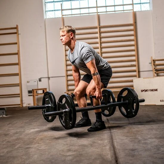 Ob zur Verbesserung der Körperhaltung im Alltag, zum Ober- und Unterkörpertraining oder zur Steigerung der Griffkraft – der Farmers Walk sollte in keiner Trainingseinheit fehlen. Sie bauen Muskeln auf und kurbeln Ihre Fettverbrennung an. Mit der Sport-Thieme Farmers Walk Bar 50 mm versuchen Sie nun, durch kleine, kontrollierte Schritte sich so schnell und so weit wie möglich zu bewegen. Sie können dabei die Bar mit Gewichtsscheiben je nach Leistungsstand bestücken. Versuchen nun eine gewisse Distanz zu schaffen oder auf Zeit zu trainieren. Wird das Fitness-Training zu leicht, lässt sich die Bar ideal mit weiteren Gewichtsscheiben bestücken. Aber nicht nur Profisportler profitieren von dem Trainingsgerät. Auch im Alltag profitieren Sie von dieser Übung, denn einen schweren Einkauf in die Wohnung tragen oder Umzugskisten zu schleppen, sind kein Problem mehr.