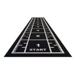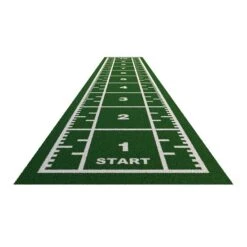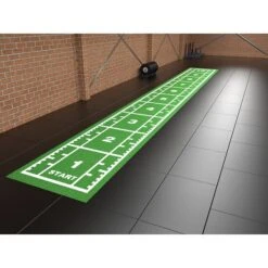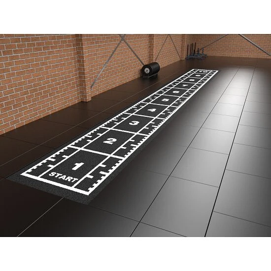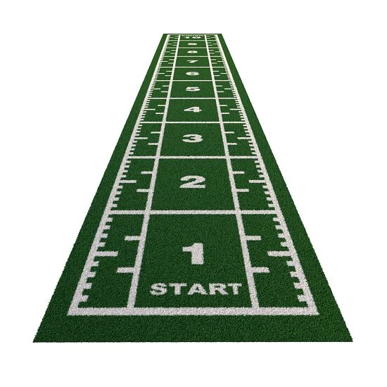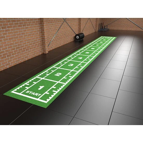 Die Sport-Thieme Sprintbahn „Premium“ verfĂĽgt ĂĽber ein sehr ausfĂĽhrliches Markierungsmuster, sodass Sie Ihr Schlitten-, Geschwindigkeits- und Schnelligkeitstraining genau durchfĂĽhren und analysieren können. Die kurzflorigen Kunststoff-Fasern aus Polyethylen (PE) bieten jederzeit einen guten Grip während der Ăśbungen. Auch starke Reibung z. B. durch einen Gewichtsschlitten kann der Sprintbahn nichts anhaben. Auf der Unterseite sorgt eine Latexschicht fĂĽr den notwendigen,rutschfesten Kontakt zwischen Laufbahn und Untergrund. Die UV-beständige Kunstrasen-Laufbahn können Sie in- und outdoor einsetzen.