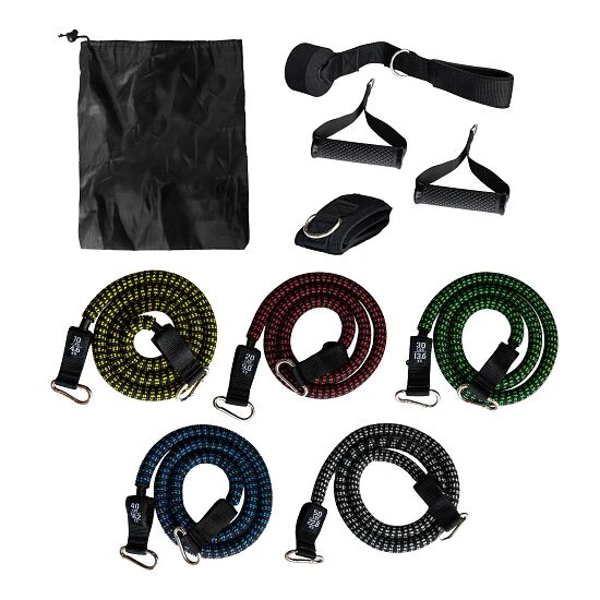 Die Sport-Thieme Tubes „Premium-Set“ erhalten Sie in verschiedenen AusfĂĽhrungen fĂĽr individuelles Widerstandstraining nach Leistungsstand. Jedes Set ist mit Handgriffen, TĂĽranker, FuĂźschlaufe und Tasche zur praktischen Aufbewahrung ausgestattet. Die Widerstandsbänder sind aus LatexGebräuchliche Bezeichnung fĂĽr Gummi. Latex ist der Milchsaft des Kautschukbaums und ein Bestandteil von Gummi. Er wird nach dem Trocknen als Kautschuk bezeichnet. gefertigt und mit einem NylonĂĽberzug versehen. An den Enden befinden sich Karabinerhaken, die das Einhängen von dem im Lieferumfang enthaltenen Zubehör ermöglichen. Das Sport-Thieme Tubes „Premium-Set“ sorgt aufgrund unterschiedlicher Widerstandsstufen fĂĽr neue Trainingsanreize bei Einsteigern und Fitness-Profis – ob fĂĽr Ăśbungen sitzend oder stehend, Bizepscurls, Seitheben, TrizepsdrĂĽcken, Beinheben oder Rudern im Sitzen.